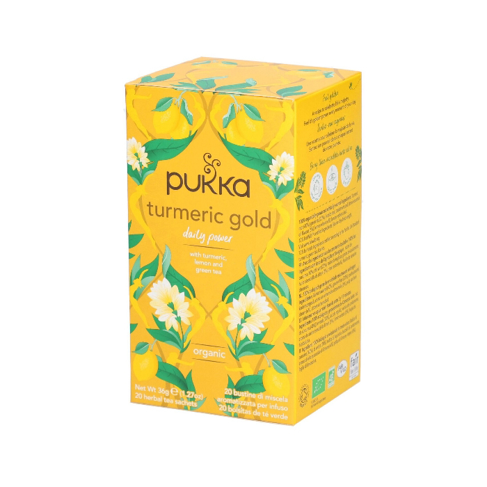 The sweet and citrusy punch of the Herbs in Turmeric Gold tea helps digestion, works as a liver protectant and detoxifies the blood. The Turmeric Gold blend is blended with whole turmeric root, which gives it an incomparable richness and makes it perfect for those looking for an intense herbal tea experience.